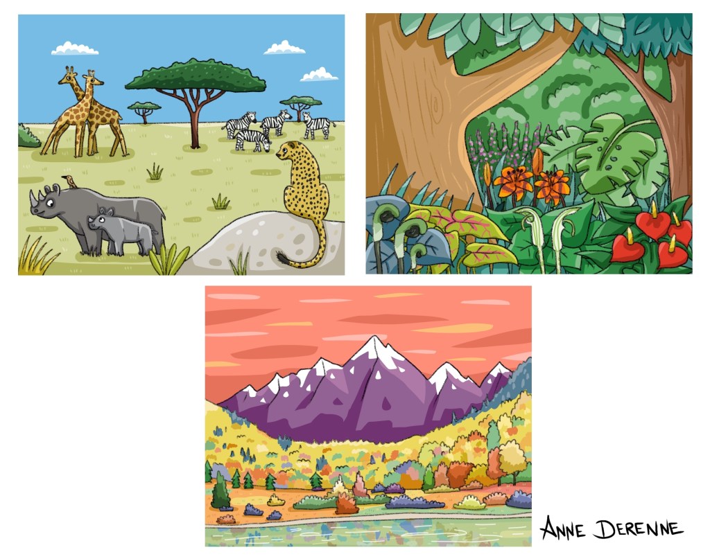 Illustrations de paysages pour manuel scolaire