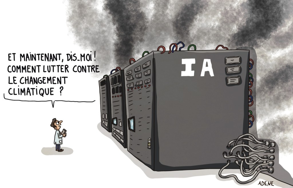 AI and climate change. Editorial cartoon published in « Le Monde » (11th of february of 2025)