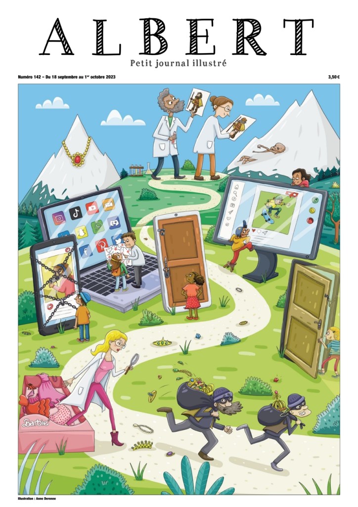 Illustration de couverture et pastilles intérieures pour le journal Albert (L’actualité illustrée pour les 9-14 ans): https://www.journal-albert.fr/