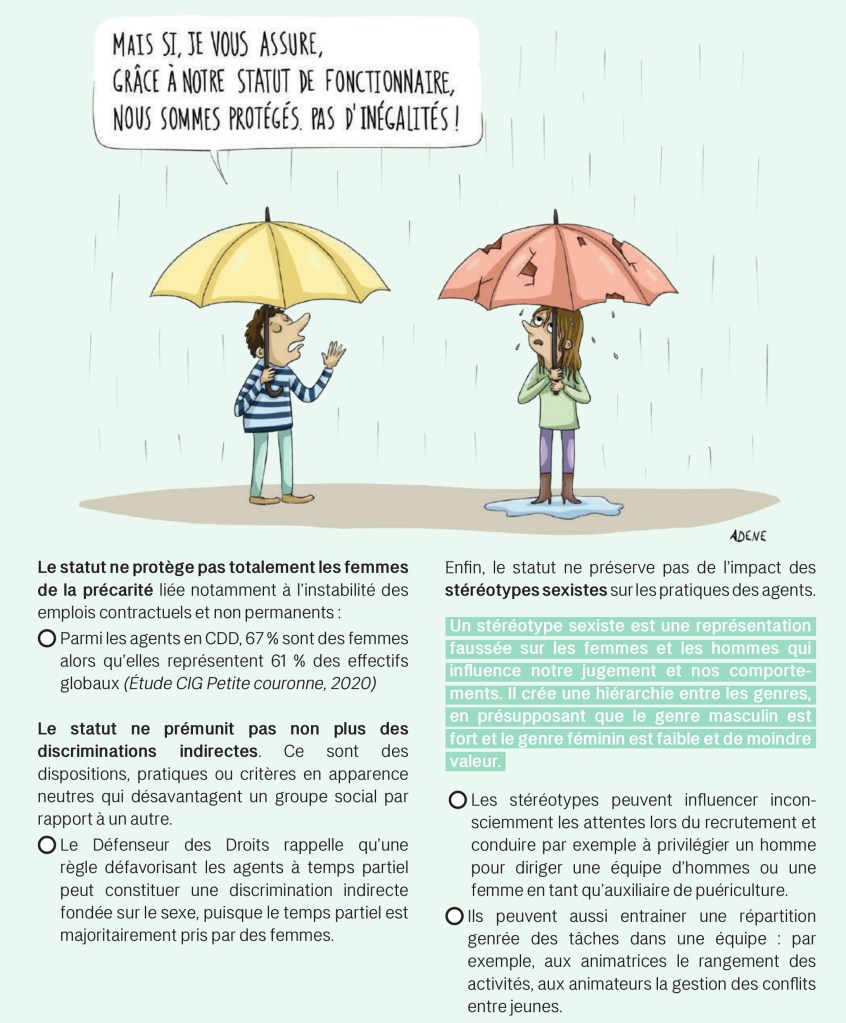 Partant du constat que de nombreuses idées reçues perdurent sur l’égalité professionnelle dans les collectivités, le Centre Hubertine Auclert et le CIG Petite Couronne ont créé un livret et une exposition dédiée aux élu·es et agent·es des collectivités. L’objectif ? Déconstruire 8 idées reçues en s’appuyant sur les chiffres-clés des inégalités, les mécanismes sexistes à l’œuvre, le cadre légal ainsi que les leviers d’actions.